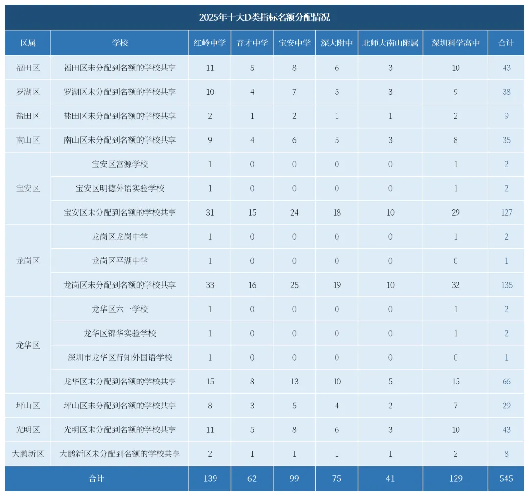 本文数据来源于2025年深圳市中考指标生分配表,仅供参考,具体以教育局最新发布为准。
