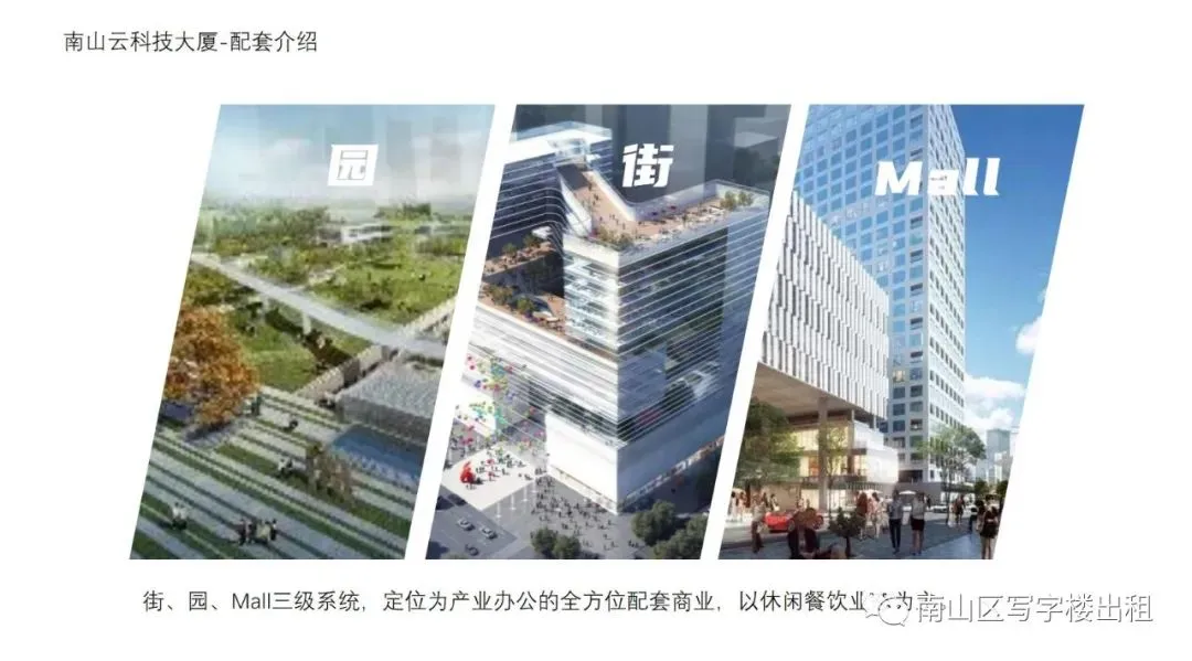项目占地约40万㎡,总建面133.5万㎡,项目涵盖研发、办公、公寓、酒店、商业等多重业态,南山云科技大厦更是项目当中翘楚,其外观设计新颖而前瞻,周边配套齐全,是南山区域内最具创新活力的品质标杆写字楼。