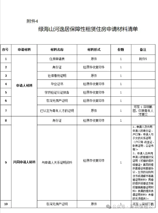 绿海山河逸居保障性租赁住房申请材料清单