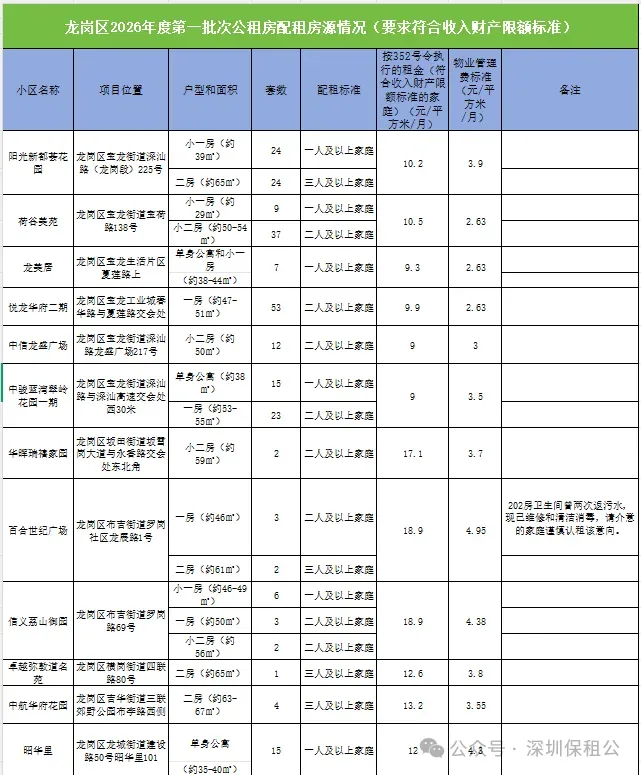 龙岗225套:225套个人保租房!不用摇号,申请即可配租!