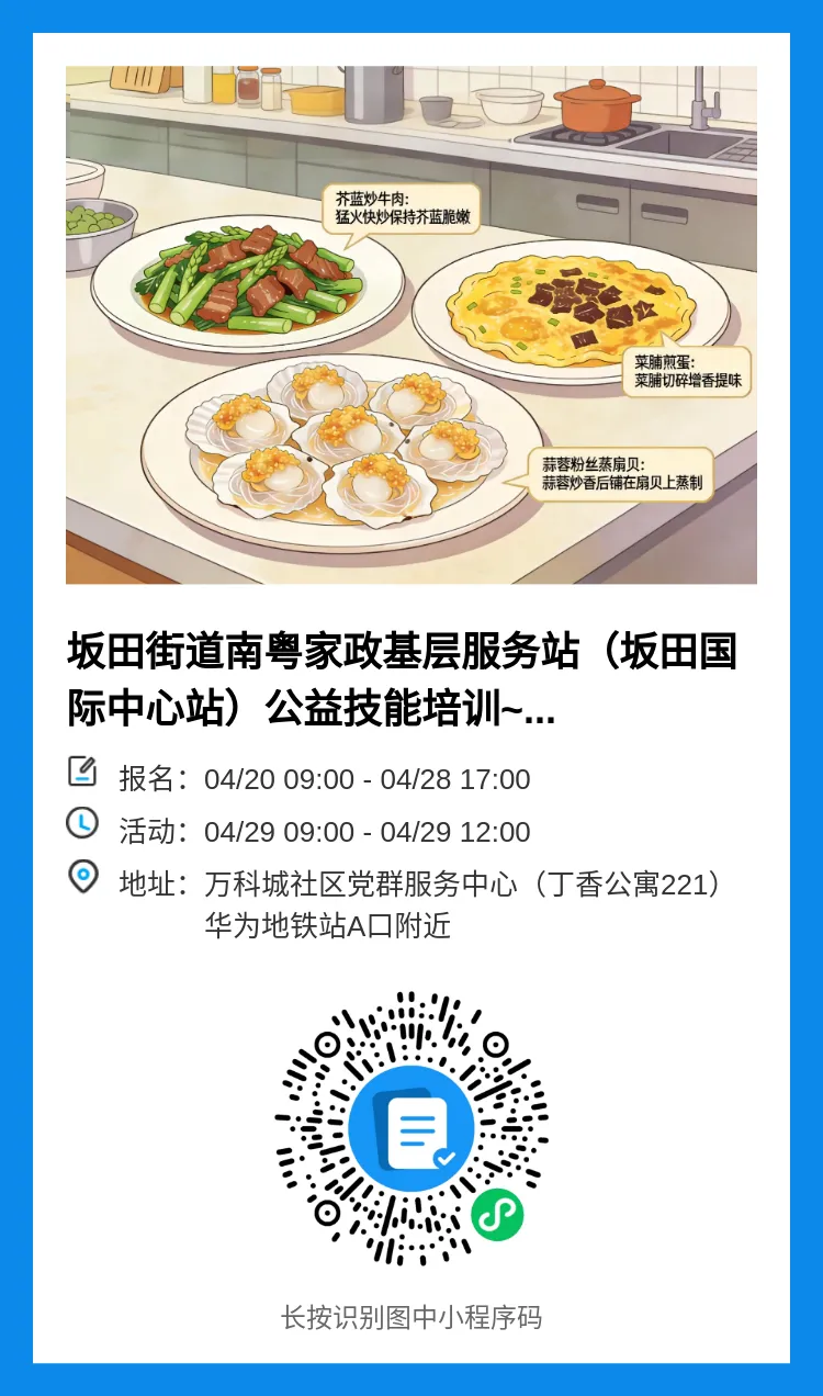 地点:坂田街道万科城社区党群服务中心(丁香公寓221)