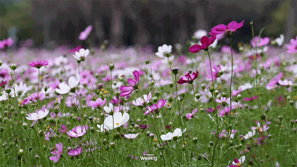 细细观察一番发现,格桑花的花茎细长而挺拔,风一吹像波浪起伏,泛起粉色的浪潮,花朵们轻轻碰撞,发出沙沙的声音,像一场舒服静谧的白噪音,让人不禁沉浸其中。