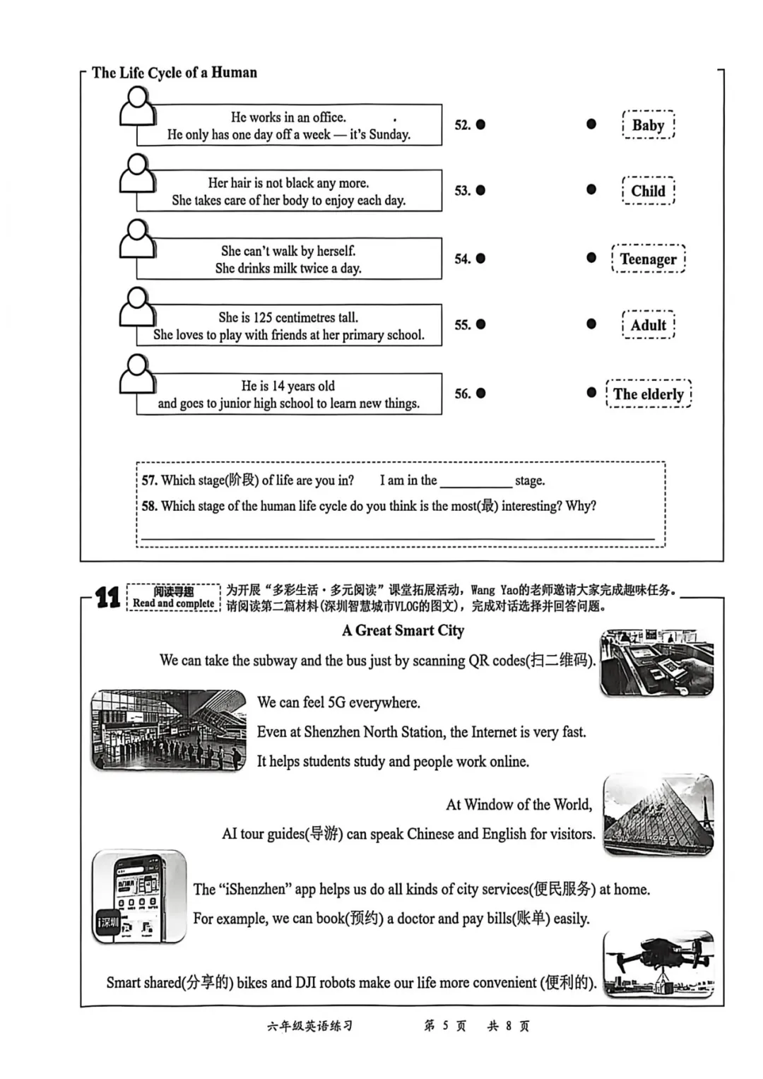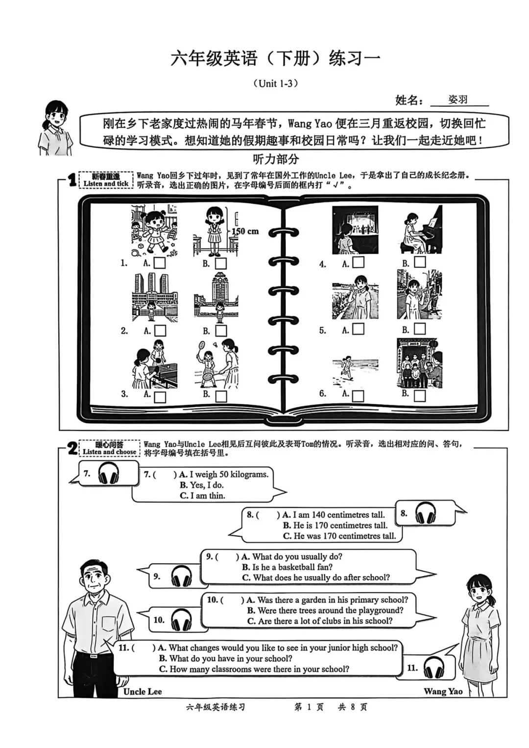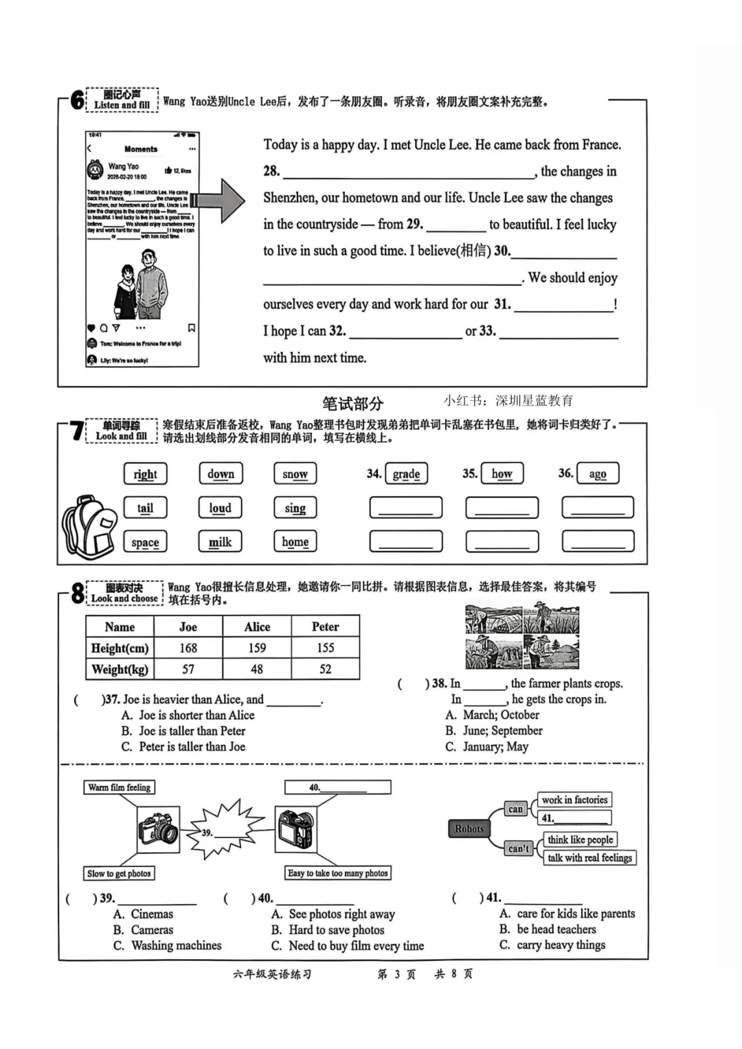 深圳市罗湖区2025-2026学年六年级英语(下册)练习一(Unit1-3)