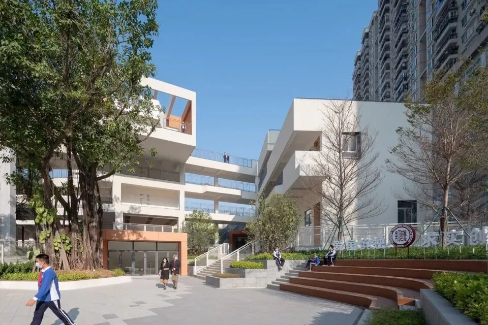 2018年,深圳市福田区“8+1”新校园行动计划正式启动。在高密度的城市环境下,尝试探索中小学校园的新类型,为以往效率至上的传统校园模式注入新的活力与想象。