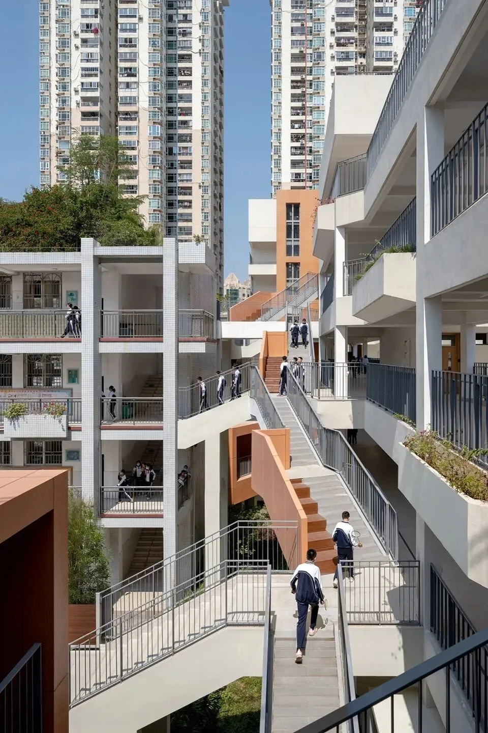 ▲街道上的之字型楼梯直达空中操场©张超 Chao Zhang