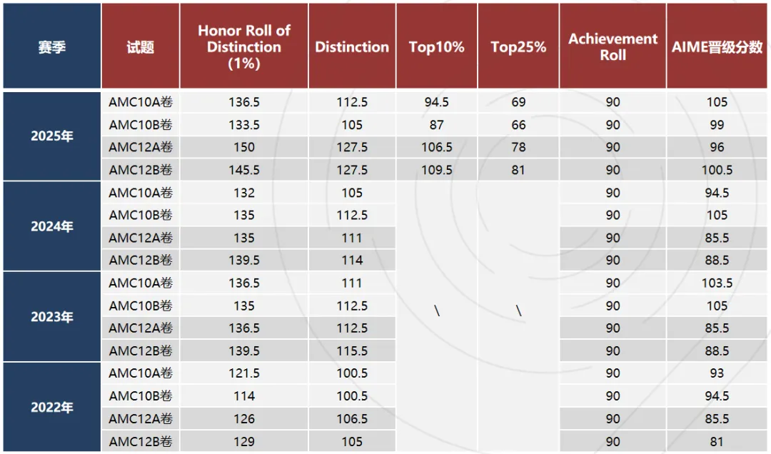 AMC10:晋级AIME分数线约100-105分