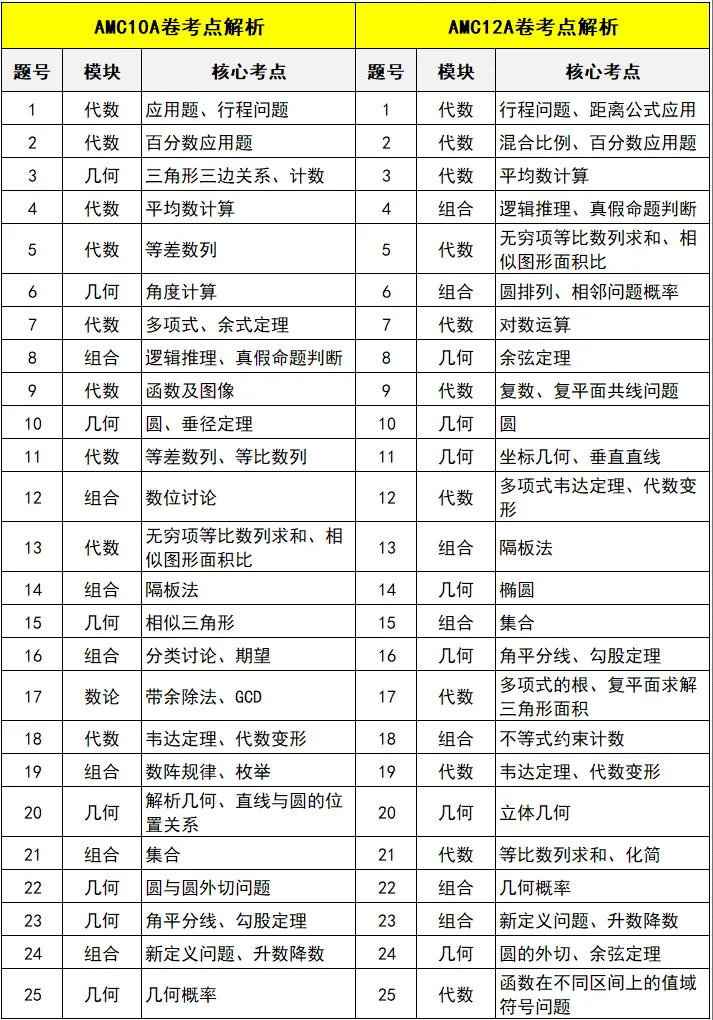 2025年AMC10与AMC12 A卷考点对比👇