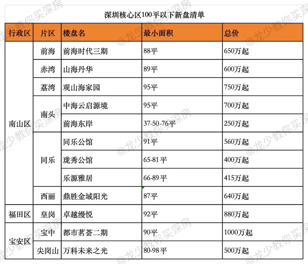 刚刚整理了深圳核心区100平以下在售新盘清单,就这么几个了,选择真的不多。