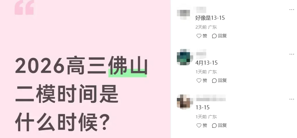 根据网友分享的消息,2026佛山二模考试时间为4月13-15日。