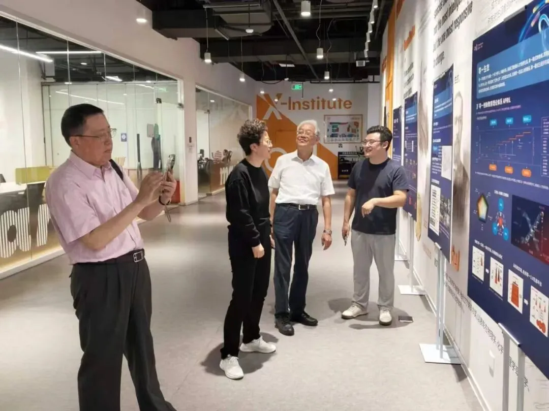 考察团一行高兴地走进唐江澎总校长任职的港中深当代教育研究所,受到热情迎接款待,研究人员介绍了在AI赋能教育、大中衔接育人、多元教育评价改革等前沿领域的研究成果,交流新时代课程重构、教师专业发展的创新路径。