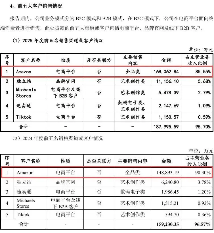 千岸有一个很大的隐患:和所有亚马逊大卖一样,得了“平台依赖症”。 尽管在努力降,2025年来自亚马逊的收入依然占了85.55%。