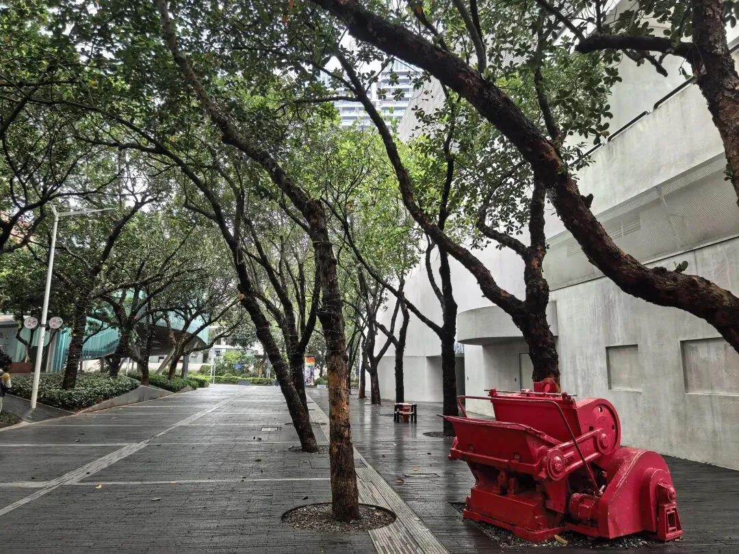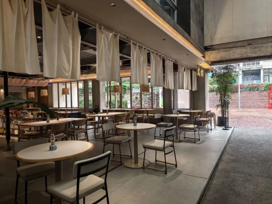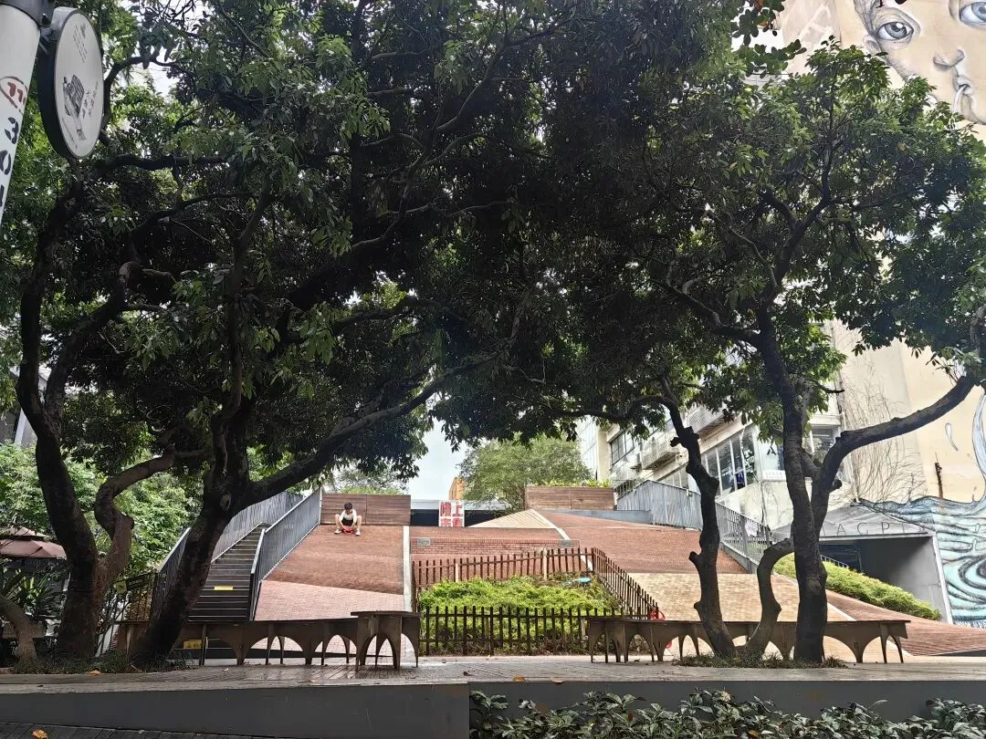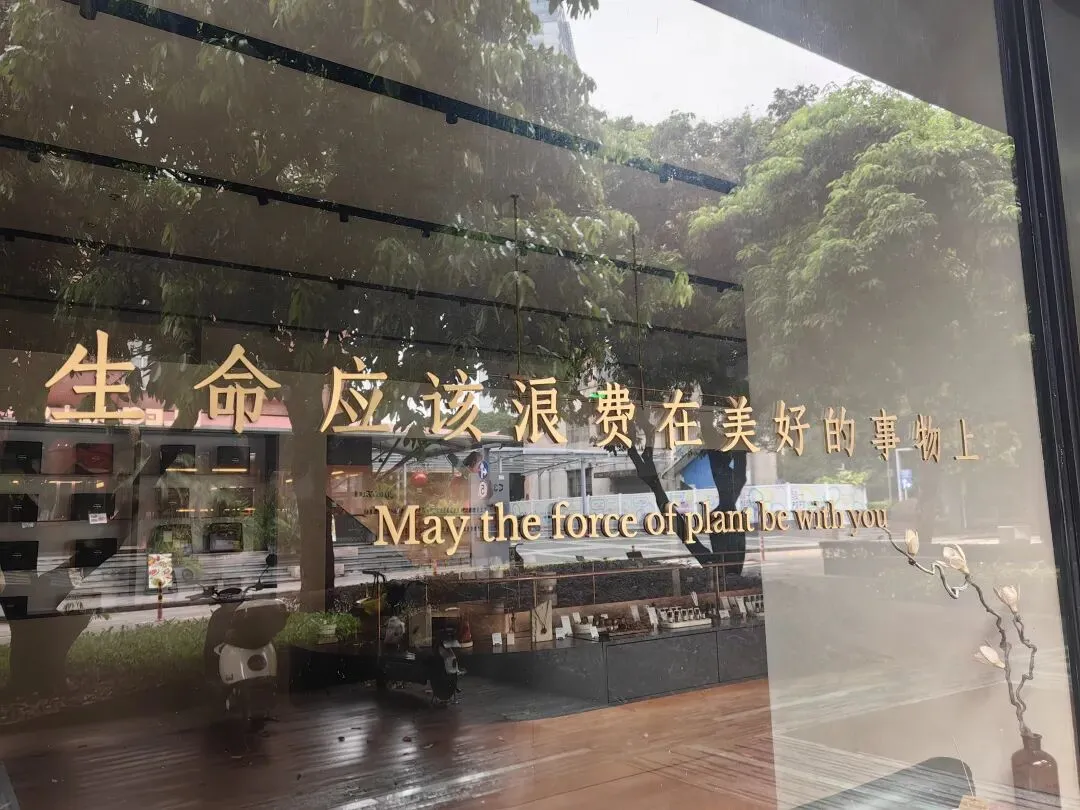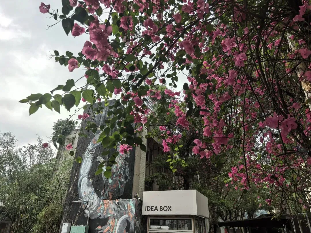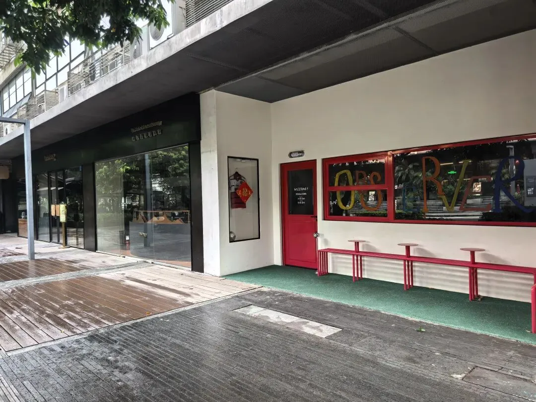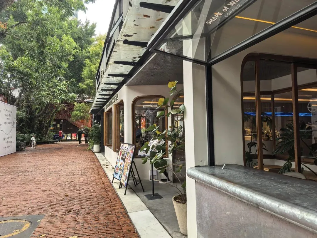 阴天,飘着小雨,估计时间还早,平日里很多人打卡的白墙树影冷冷清清,二楼的市集尚未营业。