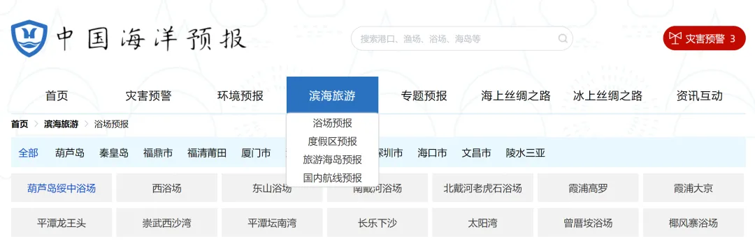 移动端可使用中国海洋预报微信小程序↓↓↓