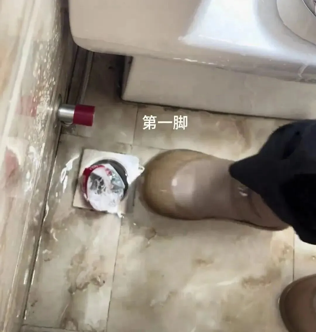 我换个方法,拿塑料瓶装水扣住,用脚踩往上说,扣住,踩一脚就行,第一脚,哎哟,这方法真可以,水立马哗哗往下流了。踩一脚还不行吗?再来用手去压不行。第二条。哇塞,这效果可以。差一点点了。再来第三不了,剩一点点了,再来第四次,这样完全就通了。