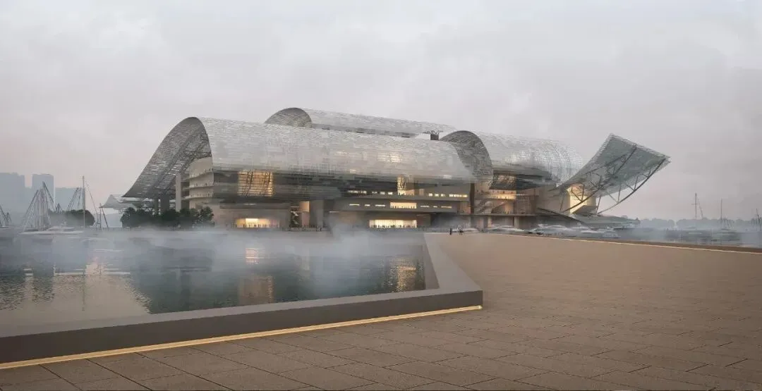 建筑由2008年普利兹克建筑奖得主让·努维尔设计,他的“海之光”方案在2021年国际竞赛中从全球百余家顶尖设计机构中脱颖而出。方案摒弃了传统封闭的歌剧院形式,以抽象与具象结合的方式回应场地,从城市、山、海多维角度讲述音乐与大海相遇的故事。