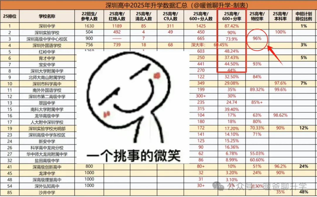 生源对比:其生源与深外(570分)咬合极紧,但高考的特控率和600分率却展现出显著优势。这中间的差值,就是深高级“加工能力”创造的价值空间。