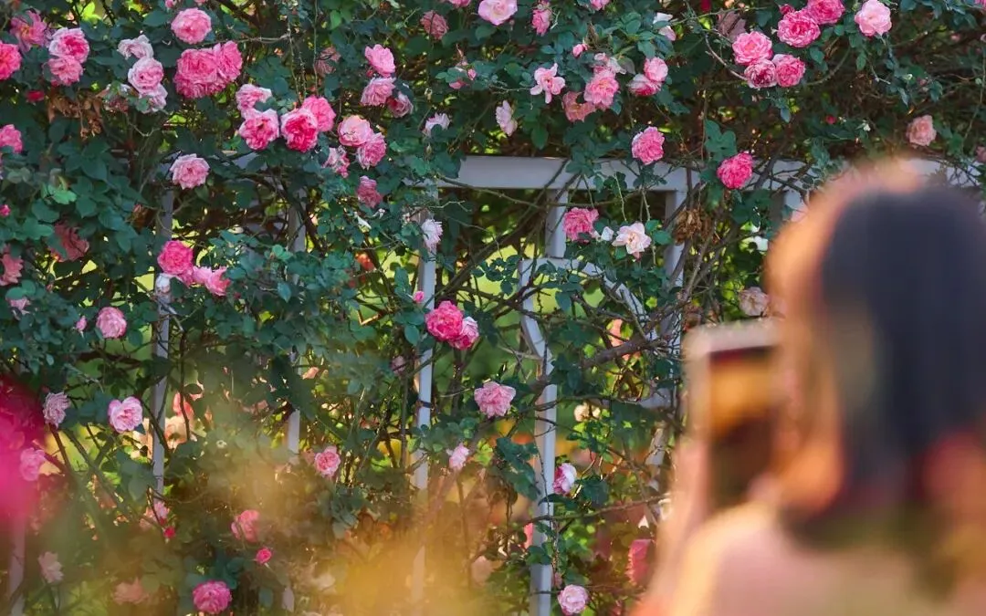 说到好看的月季,罗田森林公园的月季园当然也毫不逊色。虽然面积不大,但月季数量却十分可观,盛放时期的月季肆意地展现着身姿,每一朵都挨挨挤挤缀满花枝,放眼望去得犹如一大片绚丽的粉色花海,色彩直给地跃入眼中,美得很不真实。