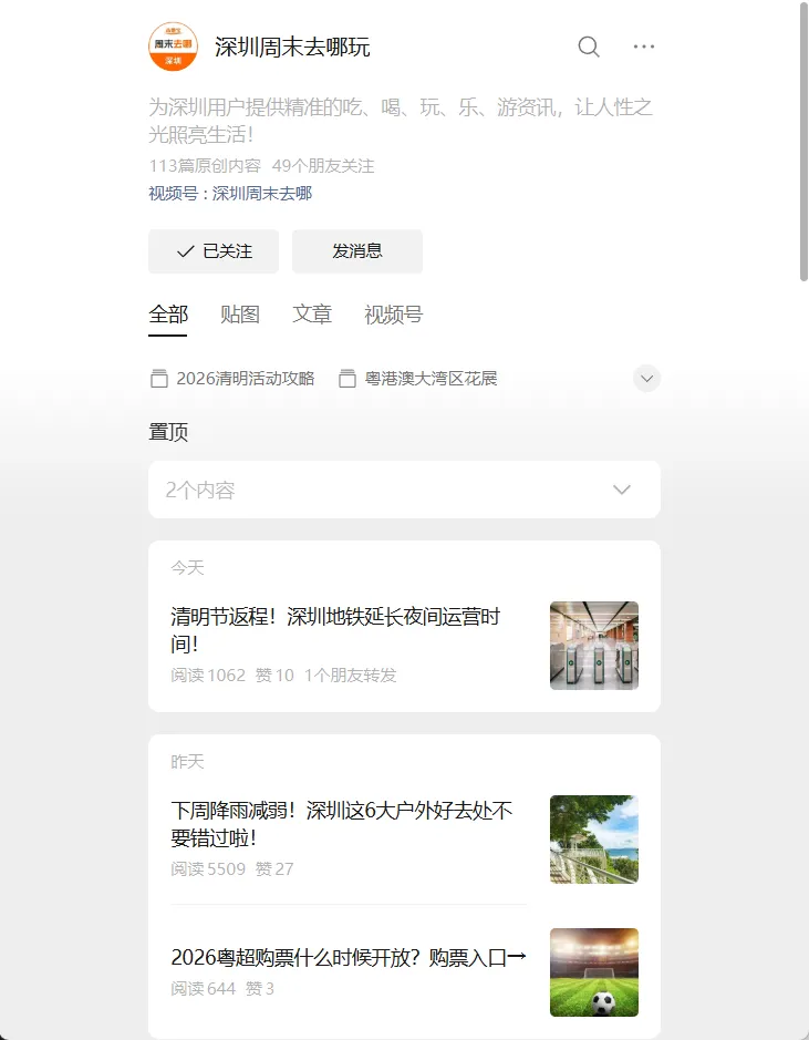 都可以在【深圳周末去哪玩】公众号查看