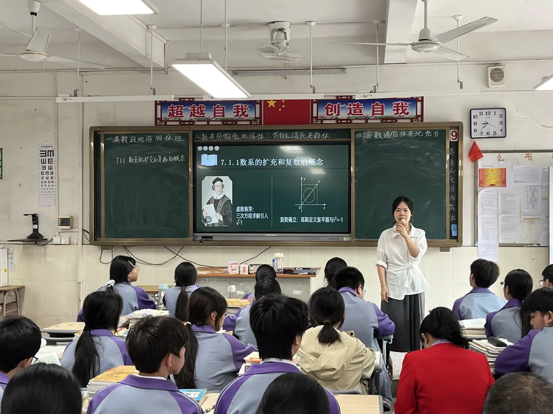 冯家妍老师的《复数的概念》,用AI为数学史注入生命力。课前,AI生成的数系扩充动画直观展现“从实数到复数”的必然性;课中,数字人演绎卡尔达诺的探索故事,虚拟连线欧拉的“对话”,让复数的由来从公式变成“可感知的历史”。AI互动PK习题更点燃课堂热情,让枯燥的概念学习变得趣味盎然。