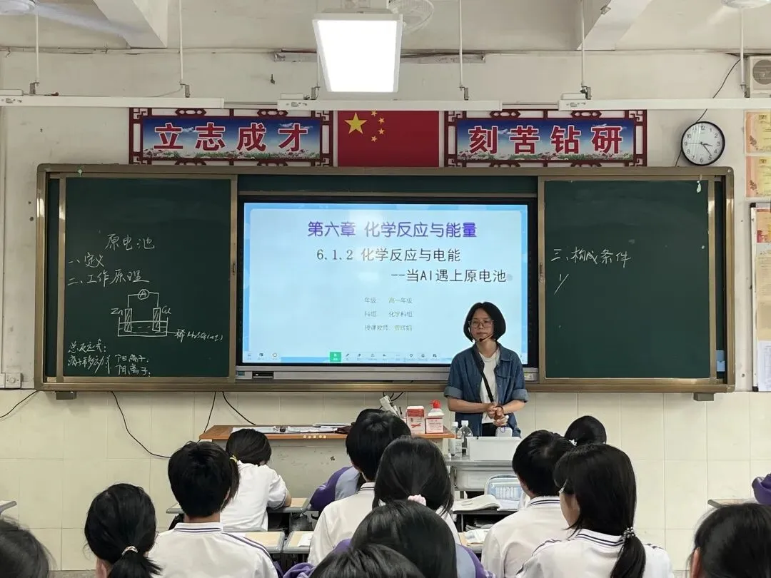 曾辉娟老师的《化学反应与电能——当AI遇上原电池》,以“技术服务教学难点”为核心。备课中,AI生成的火力发电动画让抽象原理具象化,虚拟实验室预设场景规避了传统实验的局限;课堂上,AI智能体实时答疑、统计练习数据,为分层辅导提供精准依据。虚拟实验与学生实操结合,既突破了“微观反应难观察”的痛点,又让学生在互动中夯实电化学基础。