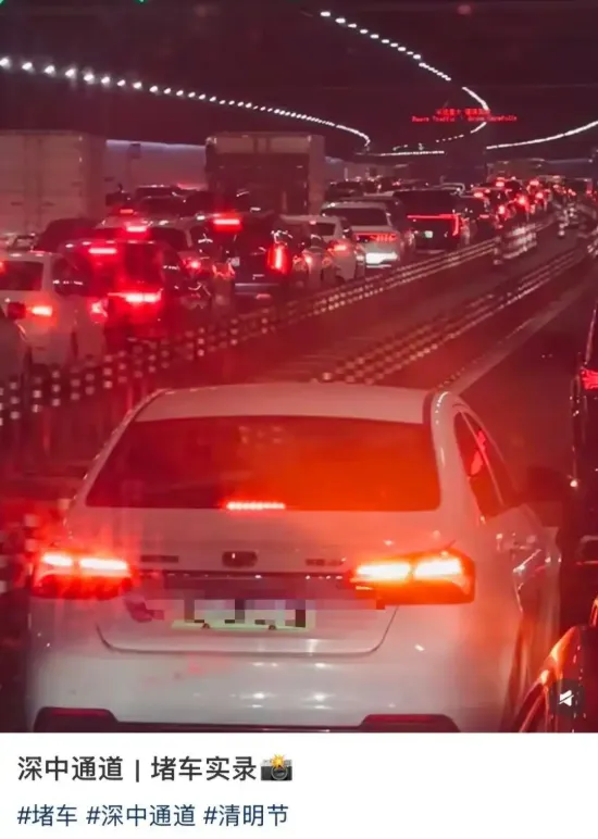 深中通道车流主要集中在东行往深圳方向,超饱和运行状态将持续至4月7日凌晨假期结束。