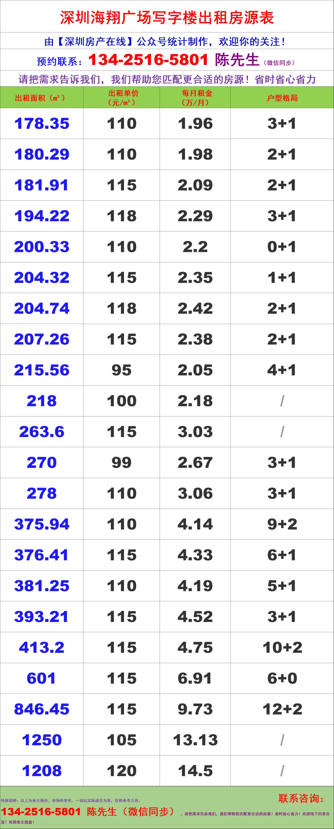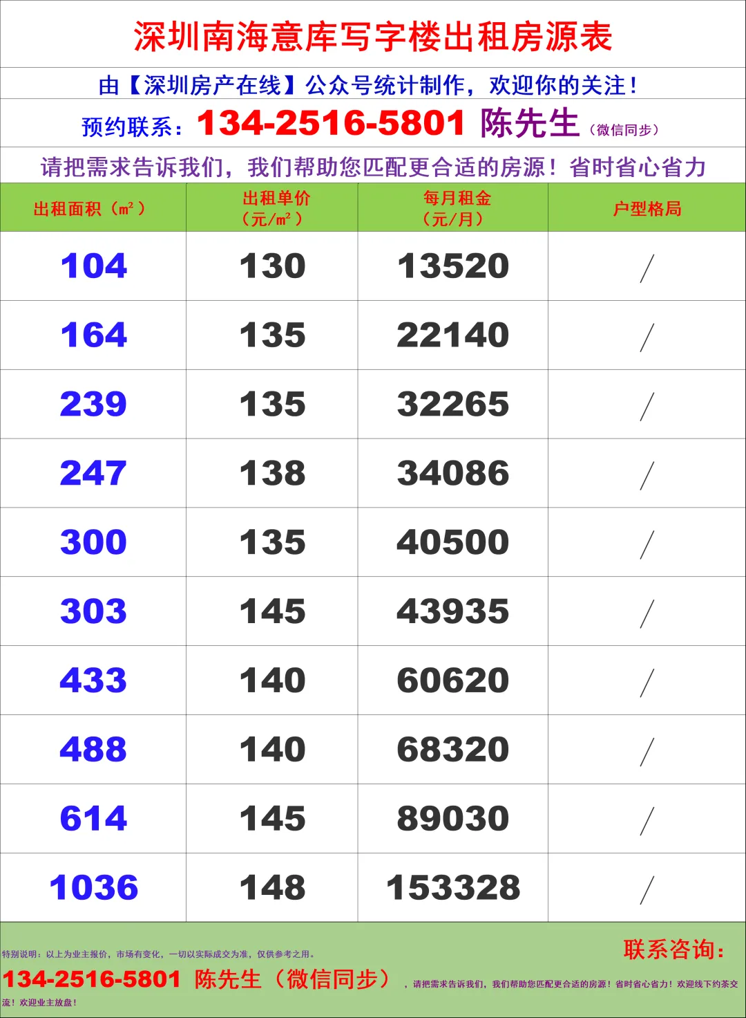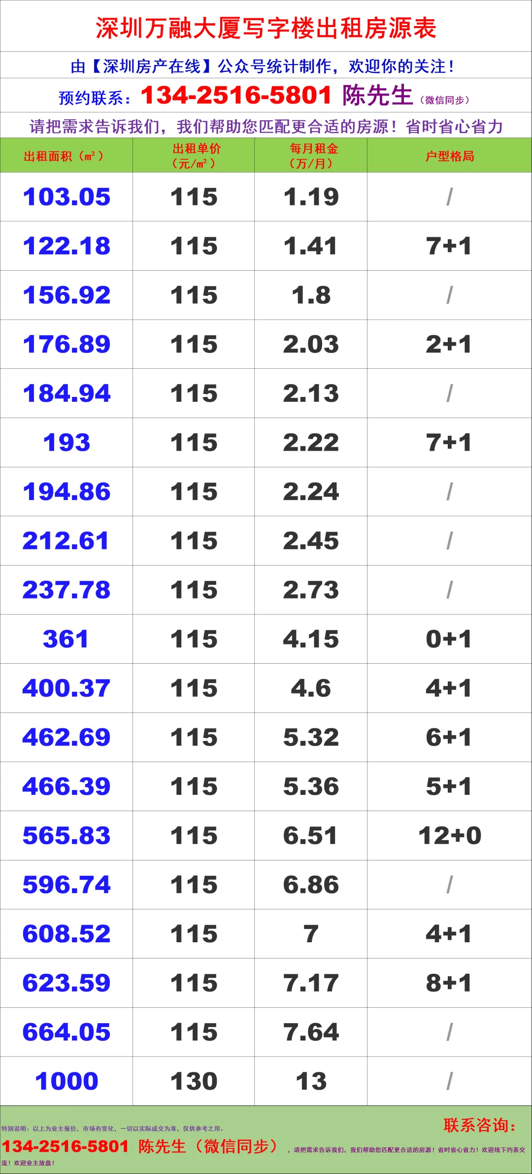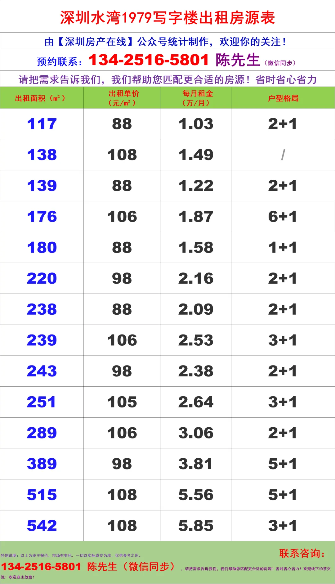 【深圳房产在线】陈经理写字楼租售团队:134-2516-5801 (微信同步)