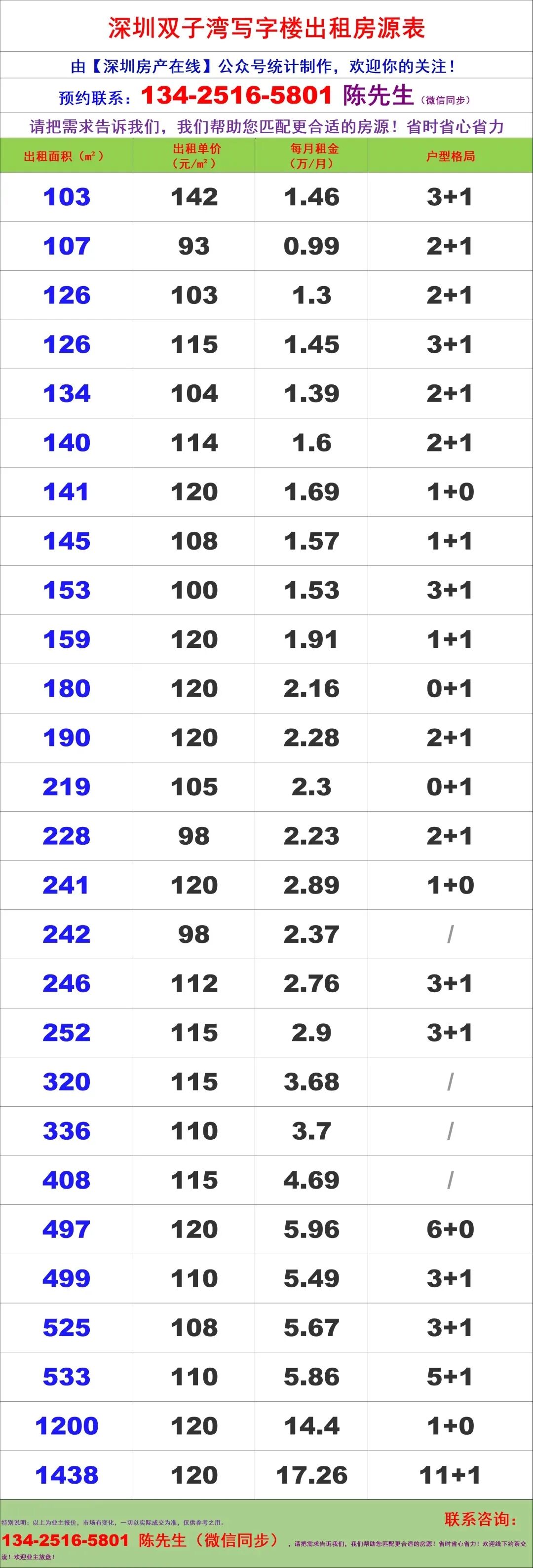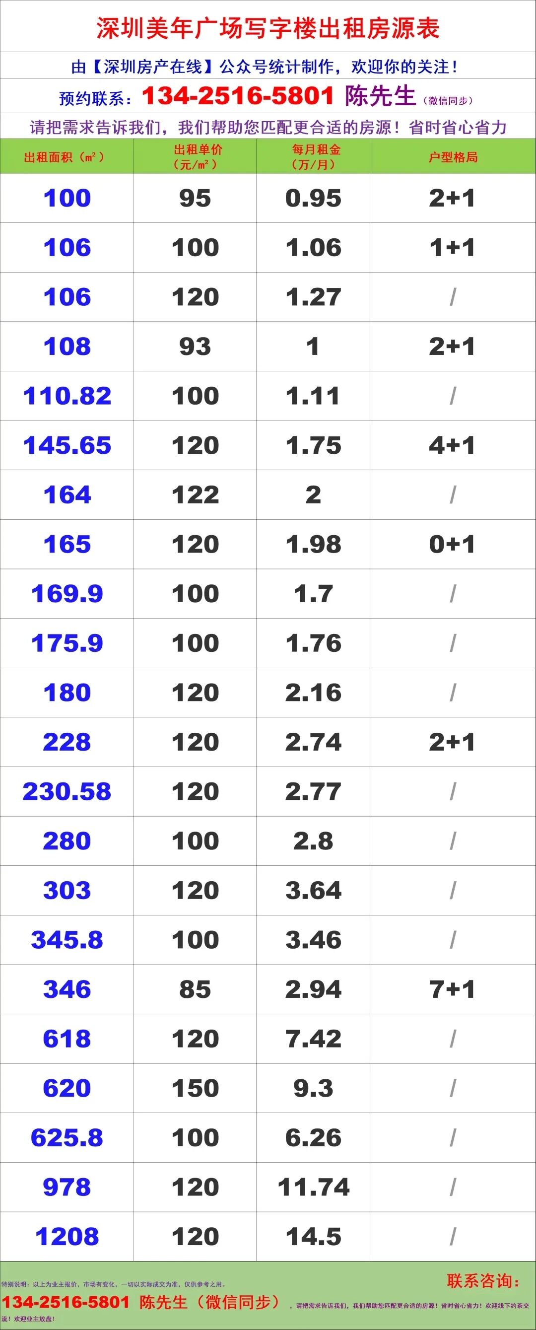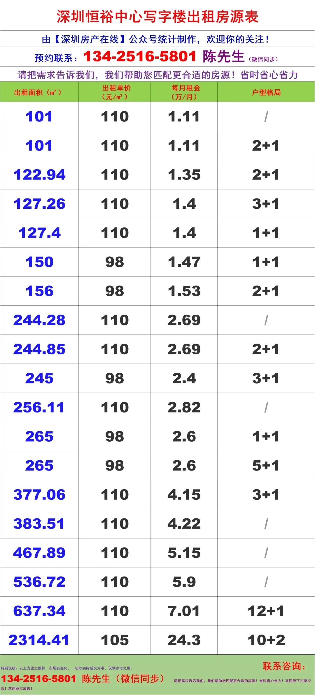 【深圳房产在线】陈经理写字楼租售团队:134-2516-5801 (微信同步)