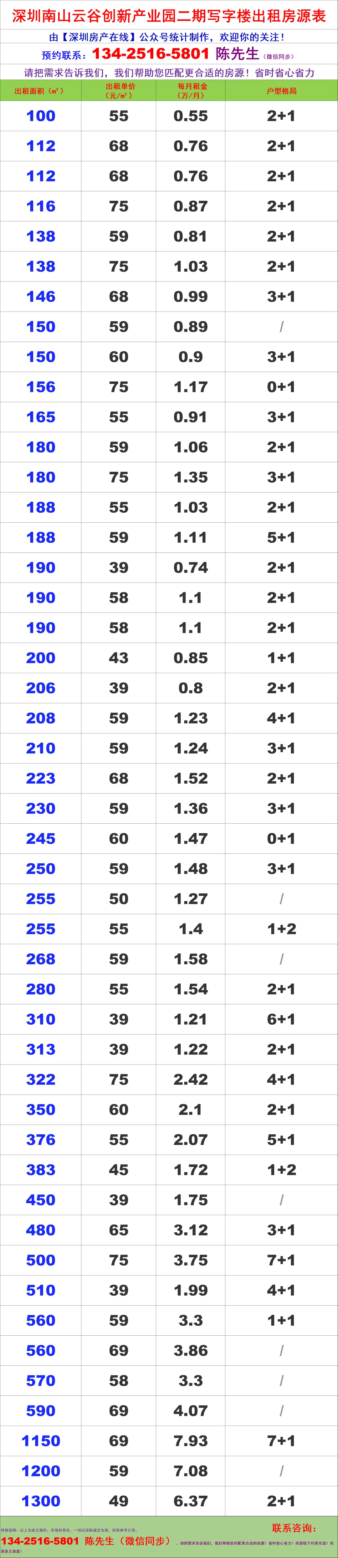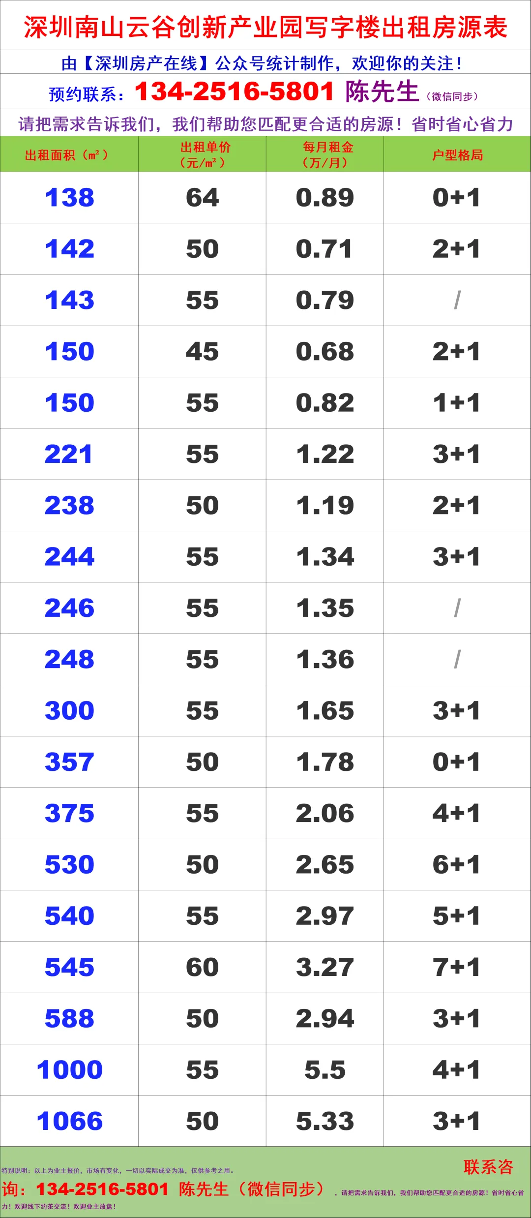 【深圳房产在线】陈经理写字楼租售团队:134-2516-5801 (微信同步)