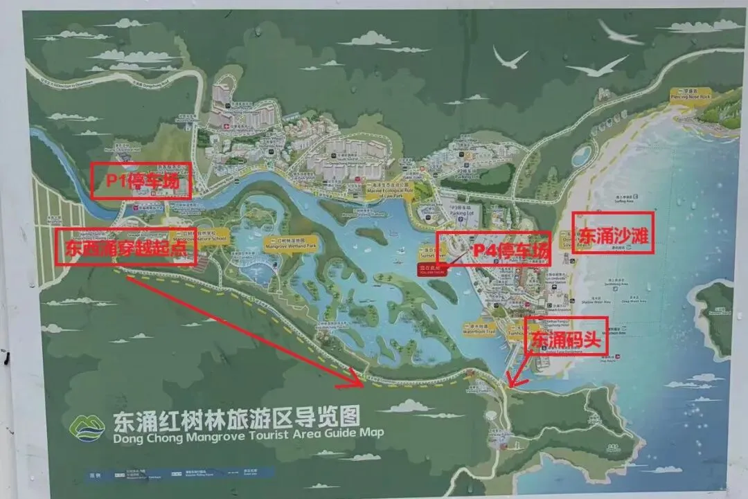 今天完成了一次东西涌穿越,但因为没提前做攻略,走了一些弯路,因此这次行程经历记录下来,作为攻略参考。东西涌穿越一般是从东涌穿越到西涌,但是也有反穿的,如果没什么特别原因的话,建议从东涌出发比较合适,这样是顺人流走,特别是人流量大的时候,顺人流走更安全。导航到东涌沙滩停车场,停好车之后,发现通过导航不知道怎么进入到穿越的起点。路上问一个人,说可以从沙滩旁的一个酒店船过去,但过去后也没发现路,这就是没提前做攻略的后果。现在回过头来分析,再细看导览图就知道怎么回事了,分享如下。总导览图因总导览图字太小,特标注几个关键位置。当时车子停在了P4停车场,这个位置离东涌沙滩很近,但是离东西涌穿越的起点却相对较远,但其实这也不影响,此时只要导航到东涌码头,码头处看到一座桥,走过那座桥就可以到正式的登山口,在登山口扫码通行即可。如果车辆停在了P1停车场,那附近就是东西涌穿越起点,走一段绿道就可以到达正式的登山口,如总导览图中的两个箭头汇合处。东涌沙滩东涌沙滩到东涌码头的门,今天刚好开门了,所以可以过来,但建议不要从沙滩到东涌码头,防止此门不开。东涌码头的桥,穿过此桥左转即可到达穿越的登山口。山上的路标位置,选择往西涌方向第一个险处,驴友提醒走右侧的绳子路会好一点,事实证明确实如此,感谢海边穿越,大部分是这种石头路,需要小心走起来有点危险,一定要小心,有一个礁石拐弯处非常难走,我想给他命名为好望角。上坡必须依赖铁链下坡必须依靠铁链,图片不太能拍出险要的效果,身临其境的话,还是有点害怕。这种必须依赖铁链的地方不完全统计应该有6处左右。美景美景视频,不禁吟唱两句曹孟德的《观沧海》