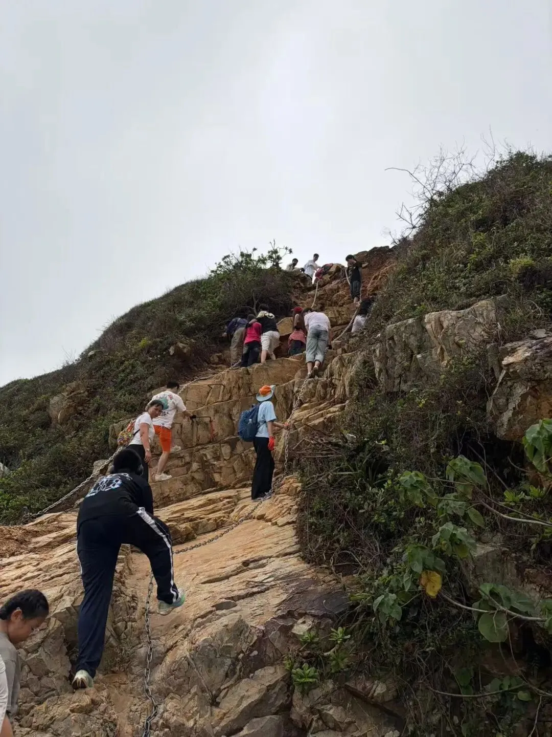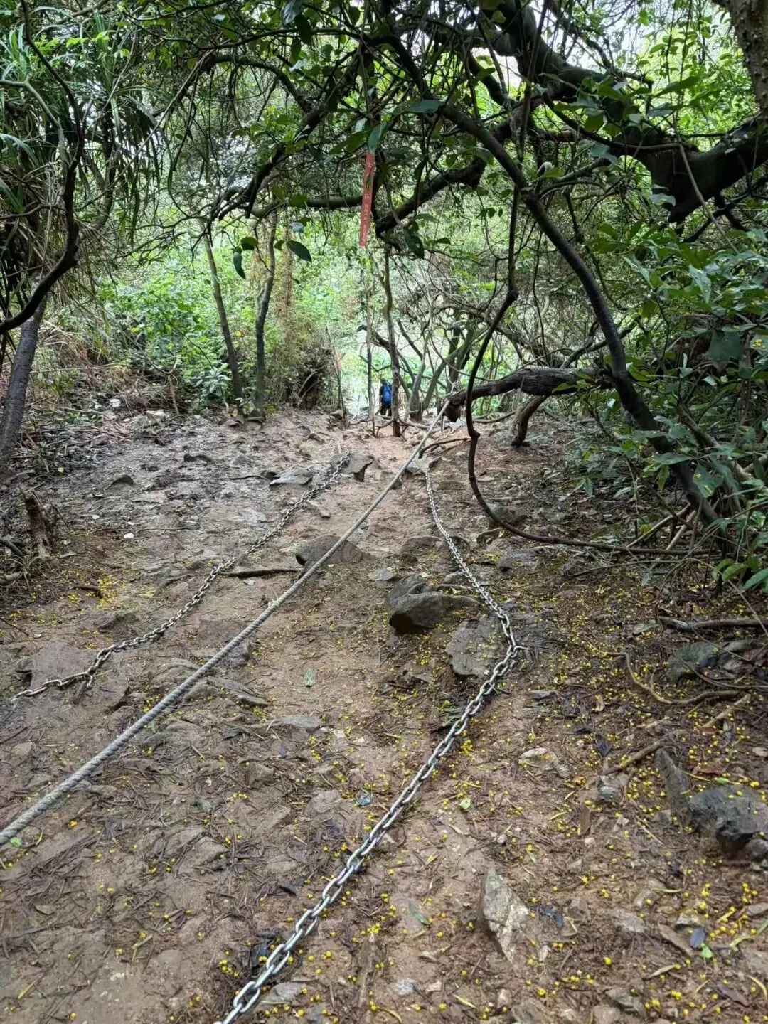 - 在需要铁链和绳子的陡峭路段,需要特别小心,手脚并用,必要的时候连滚带爬,屁股也用上,安全大于一切优雅和风度。不要因为后面有人排队而着急,牢牢的抓住绳子。怎么说呢,就是生存的本能也会让你特别小心。
