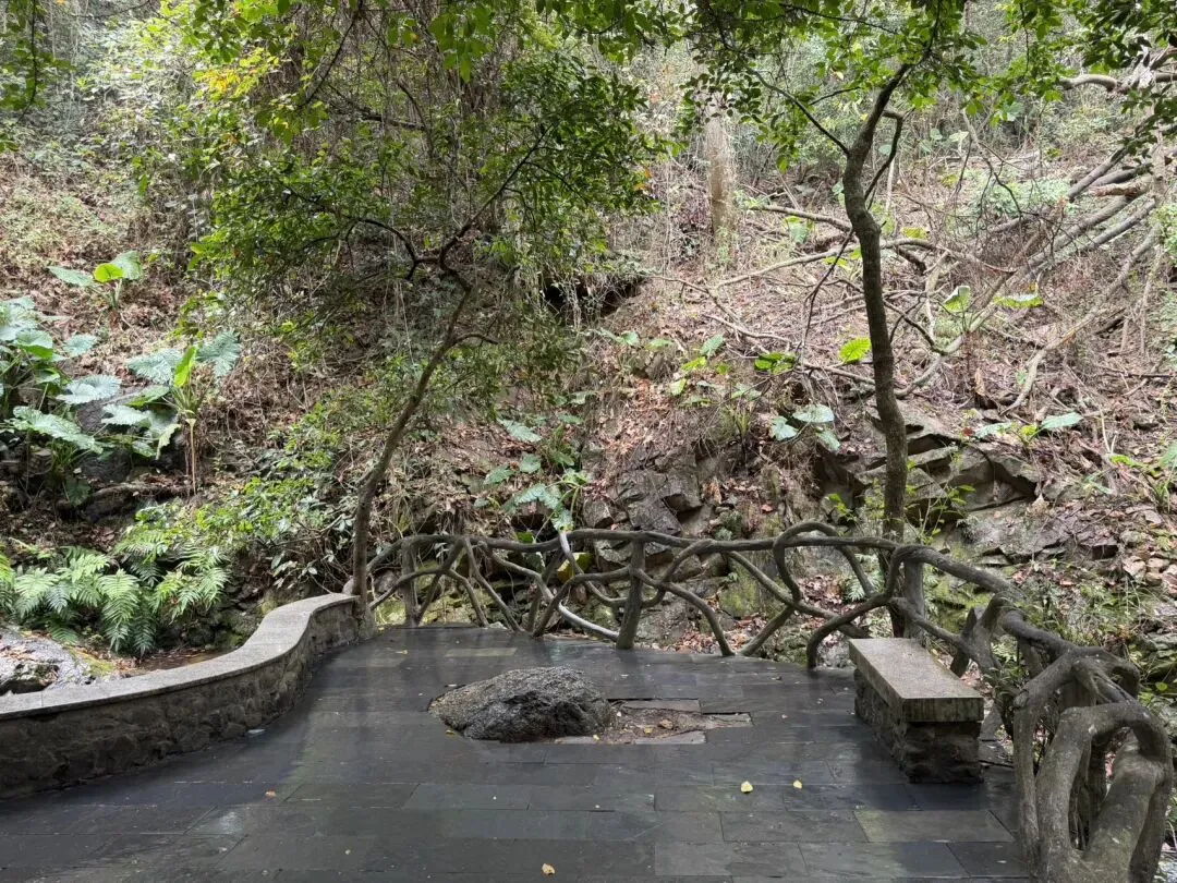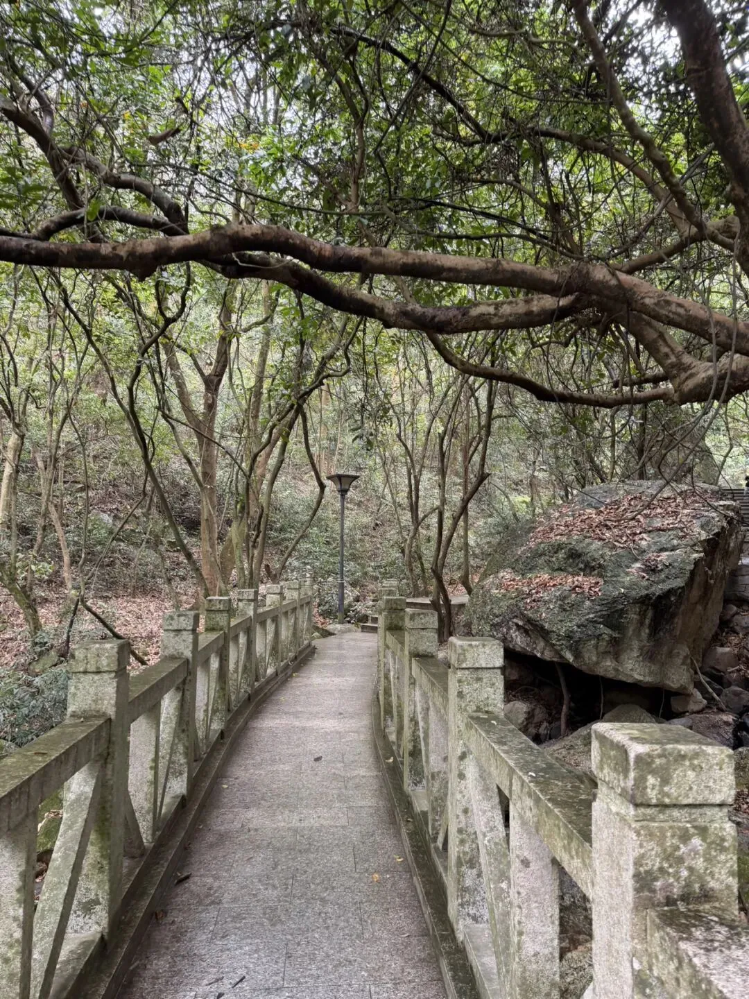 山路走着走着,忽然变成了台阶,台阶也没太久,就又变成了路边有栏杆的环山栈道。