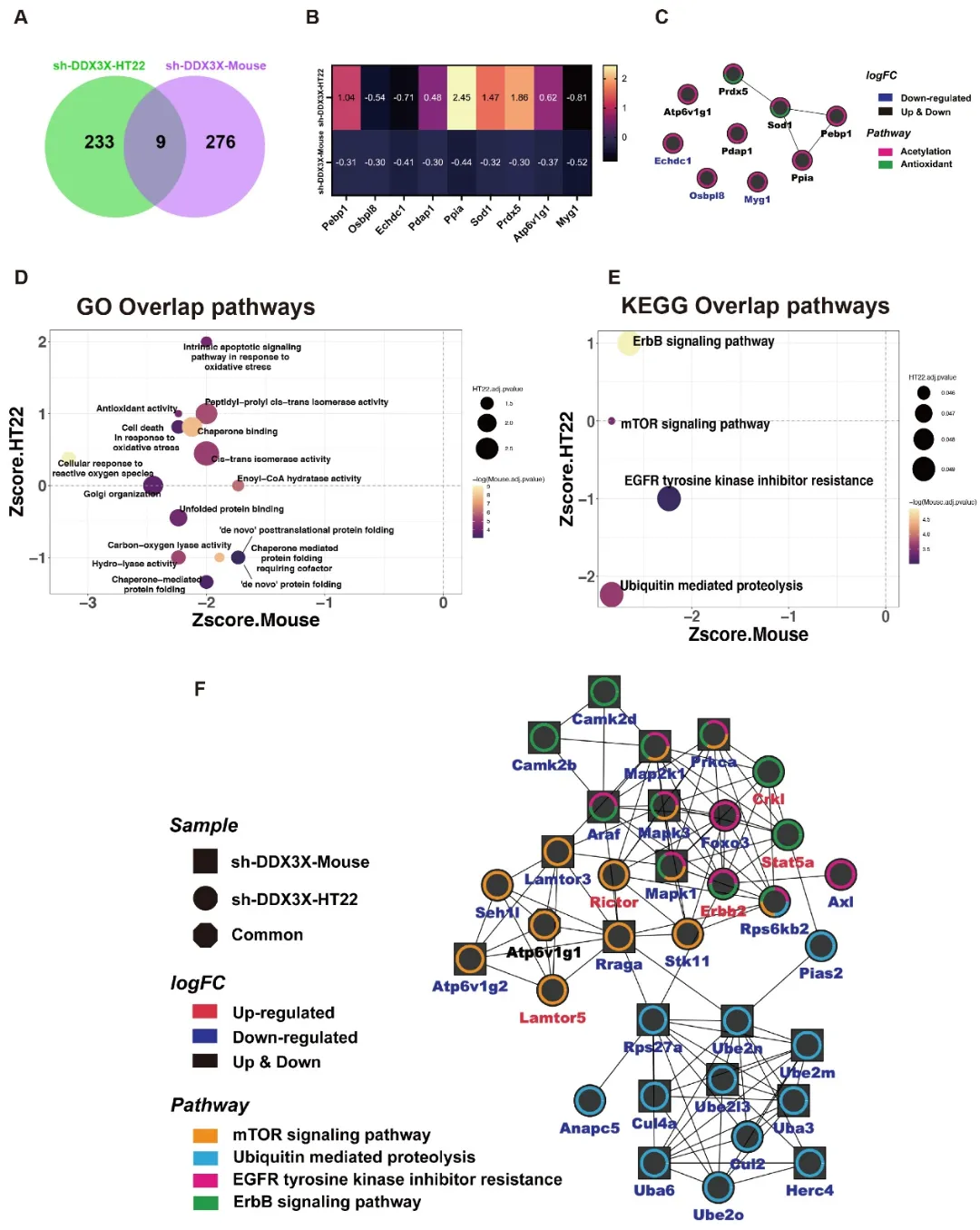 图6. HT22 细胞与小鼠mPFC组织联合蛋白质组学分析结果