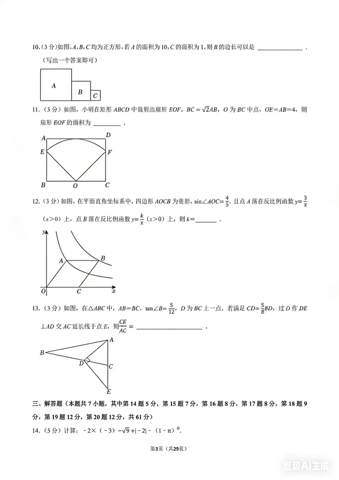 • 2024深圳中考第14题:实数混合运算,包含平方根、绝对值、零次幂、乘方,是每年必考的基础计算题,步骤规范就能拿满分。