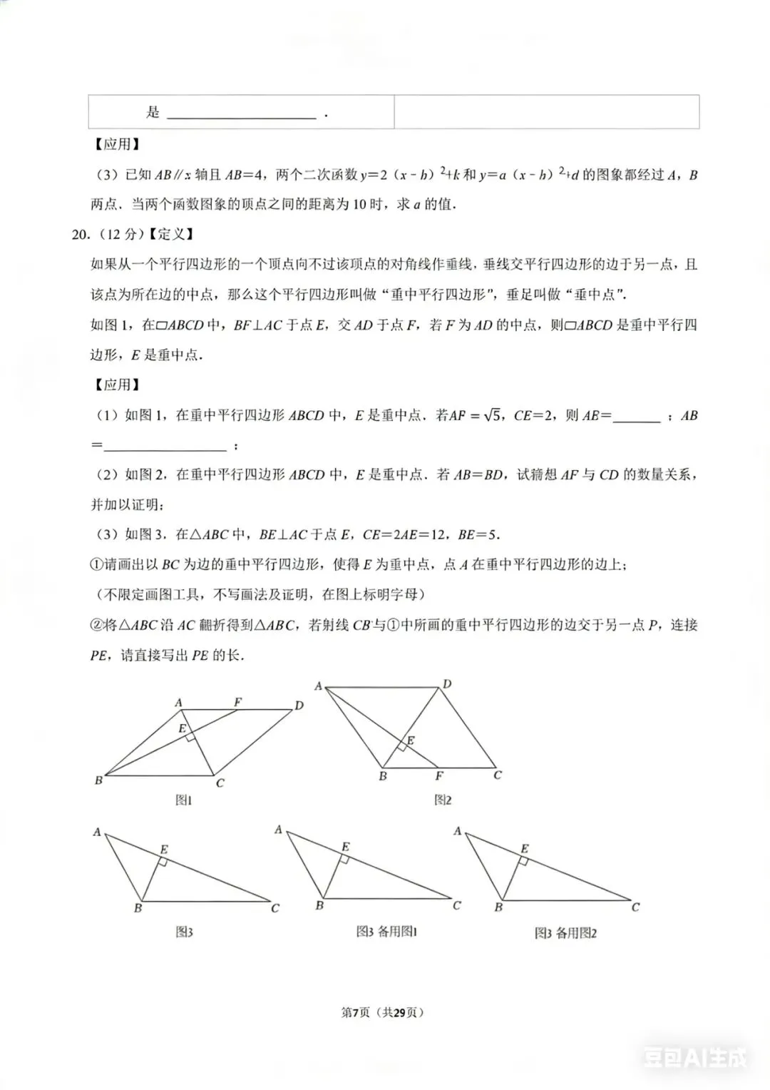 • 2025深圳中考第20题(垂中平行四边形):定义“垂中平行四边形”,围绕定义设置3个小问,从计算到猜想证明,再到作图应用,层层递进,考查学生的逻辑链完整性。