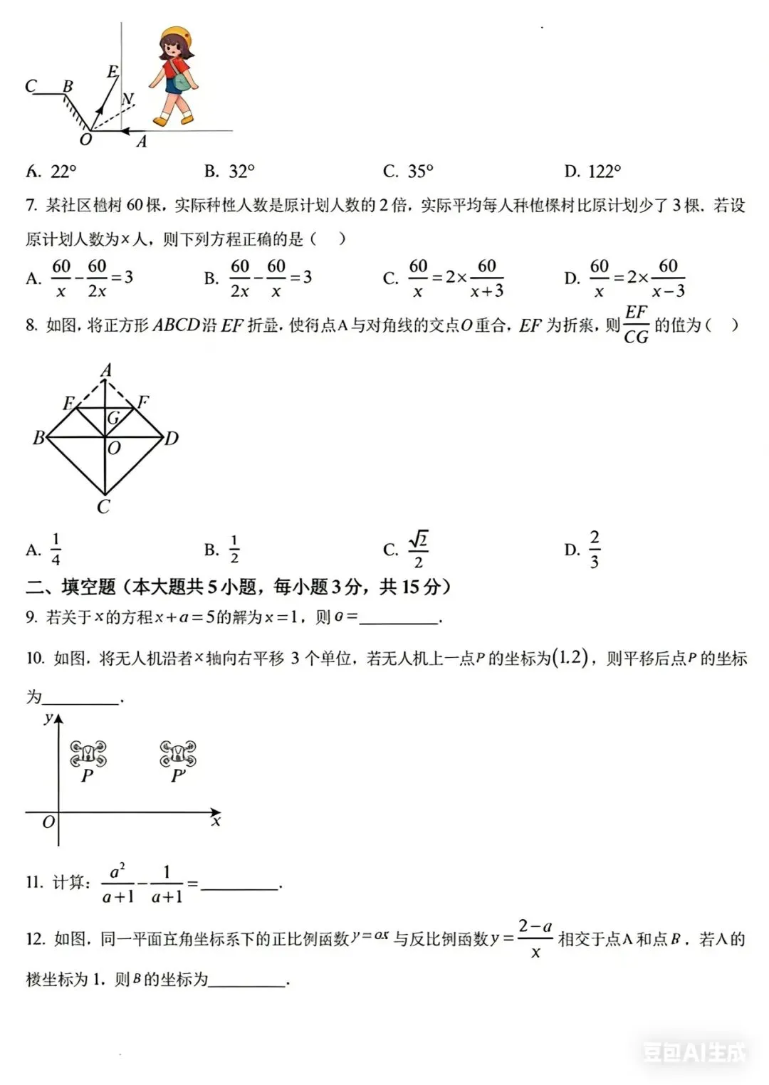 命题规律:基础题严格围绕课标核心知识点,不偏不怪,只要掌握课本基础、计算不失误,就能稳稳拿下大部分分数。