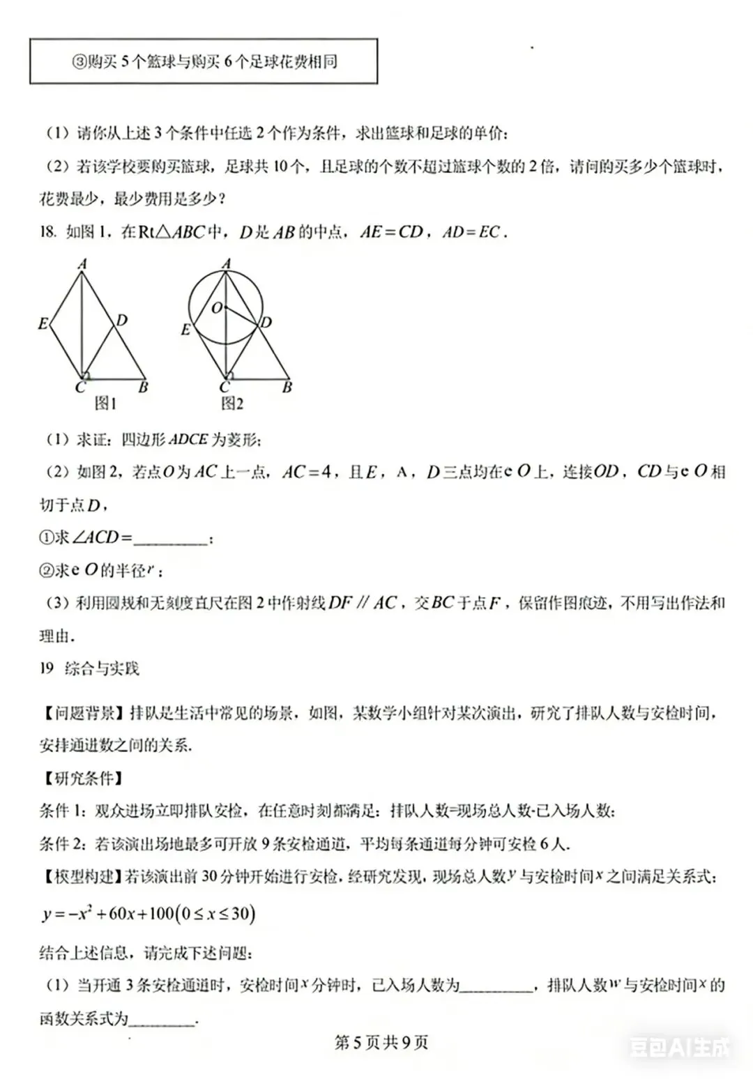 • 2024深圳中考第17题(体育用品采购):以学校采购球类为背景,用二元一次方程组解决单价问题,再用一次函数求最值,贴近学生生活。