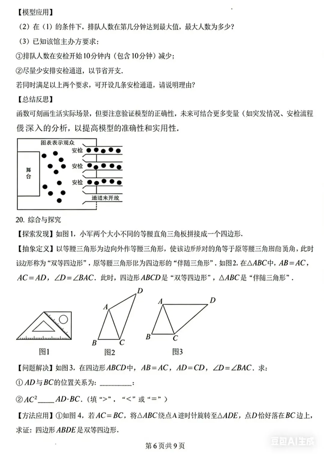 • 2024深圳中考第19题(安检排队问题):以演出安检为背景,用二次函数刻画排队人数与时间的关系,考查函数建模、最值分析,是典型的“实际问题数学化”。
