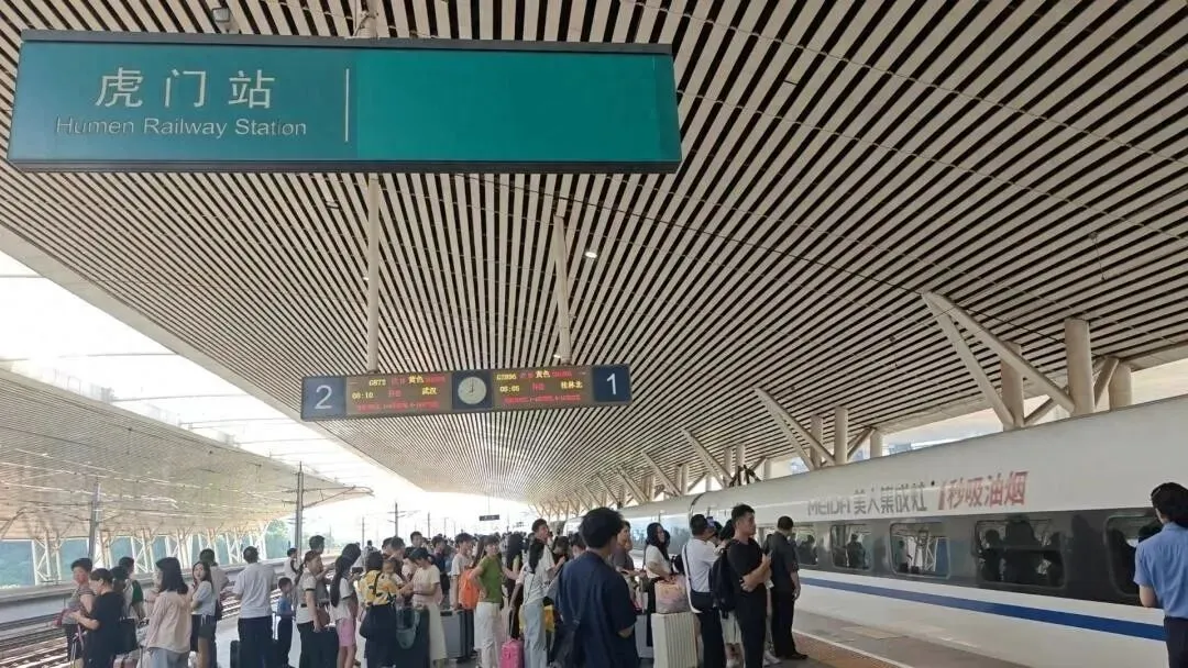 该站位于东莞虎门镇,可一站直达深圳北站或是广州南站。