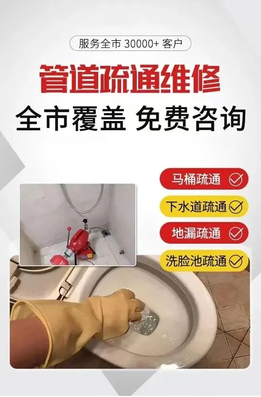 🔄 疏通服务:下水道、马桶、蹲厕、地漏、下水管、脸盆、菜盆、墩布池、坐便器、小便池、主管道。