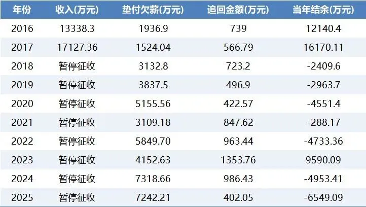 数据显示,深圳欠薪保障基金近几年每年垫付款项3000万元以上,2024年、2025年超过7000万元。由于追偿金额远低于垫付支出,基金自2018年起多数年度结余为负,仅2023年实现9590.09万元结余,不过相关部门未公布这一年资金的详细来源。