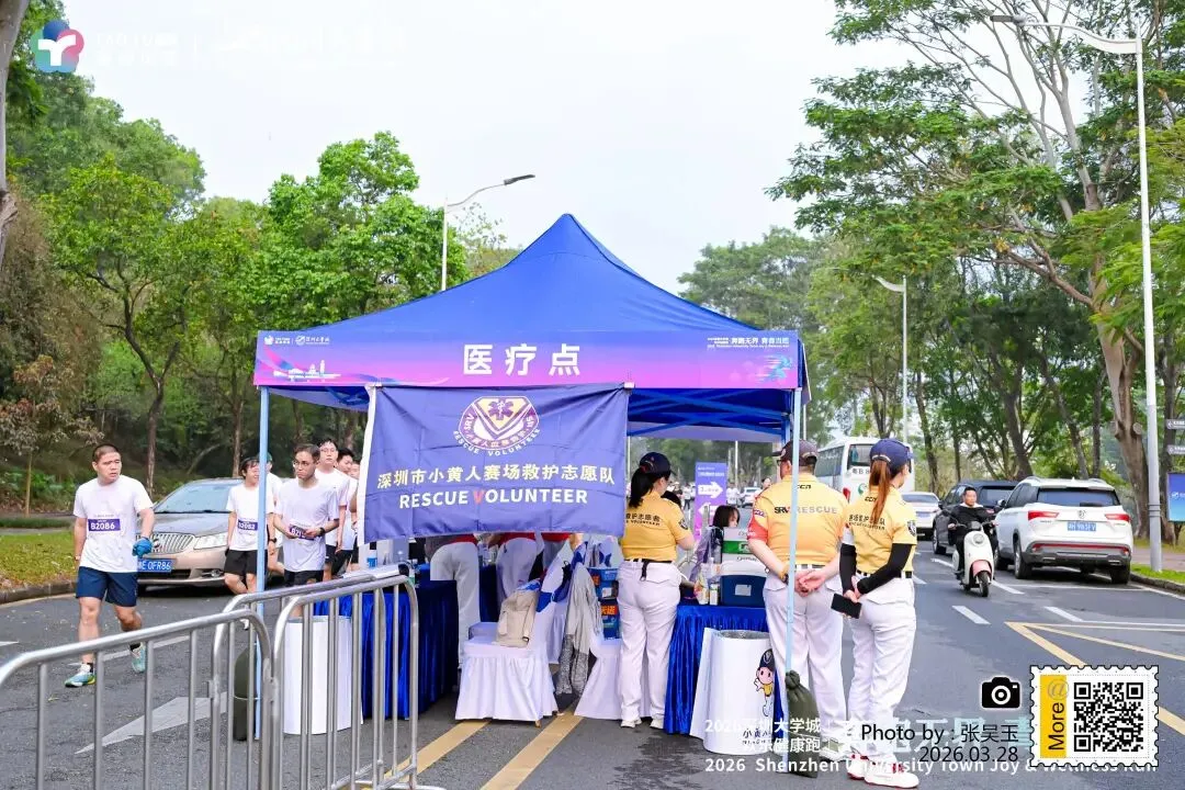 作为赛事的 “老朋友”,深圳市小黄人赛场救护志愿队已连续多年为活动保驾护航,早已成为赛道旁不可或缺的温暖守护者。今年,这支专业队伍再次如约而至,继续以专业能力筑牢安全防线,让近千名高校师生、社区居民及跑步爱好者在安心奔跑中传递欢乐,用汗水诠释健康。