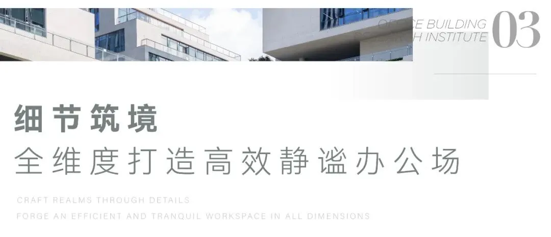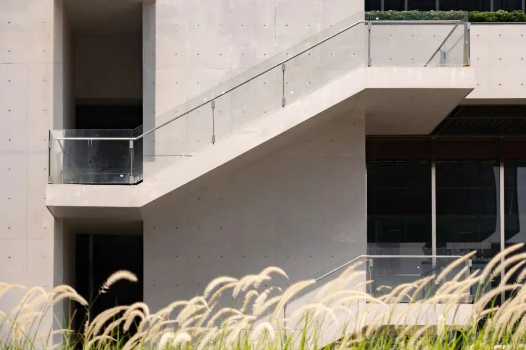 在材质之上,坚守可持续的美学与健康。项目打造了2.4 万㎡清水混凝土墙面,108 根清水混凝土墙柱以毫米级施工精度一体浇筑成型,无需额外装修修饰,既节约了建筑材料,又以材质本身的肌理,营造出文化艺术馆般的高级空间氛围,为企业打造极具质感的商务门面。同时,大厦内饰全部采用建材 0 级标准的低挥发环保材料,从源头降低甲醛、TVOCs 等有害物质释放,打造纯净零压的办公环境,全方位守护办公者的健康。