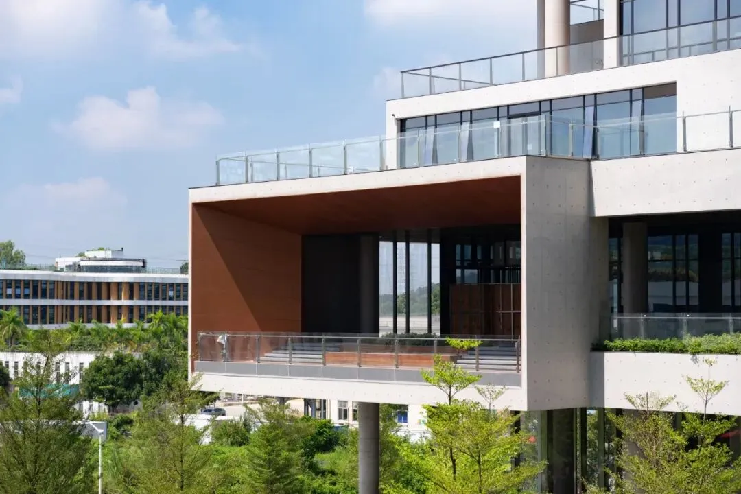 以光为笔,为空间注入灵动生机。项目采用开放式建筑设计,通过 20 + 开放式庭院露台、180° 全景式落地玻璃窗、10m 挑高无柱大堂、三层通高阳光中庭的多重设计,实现90% 以上的自然采光覆盖率,让自然光毫无保留地涌入室内的每一个角落。外立面全线采用 LOW-E 超白玻璃,紫外线阻隔率约 99%,透光率达 91.5%,既保留了无遮挡的全景视野,又能隔绝辐射伤害,让眼睛在柔和天光中放松,让灵感随光影自然流淌。