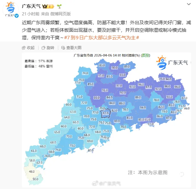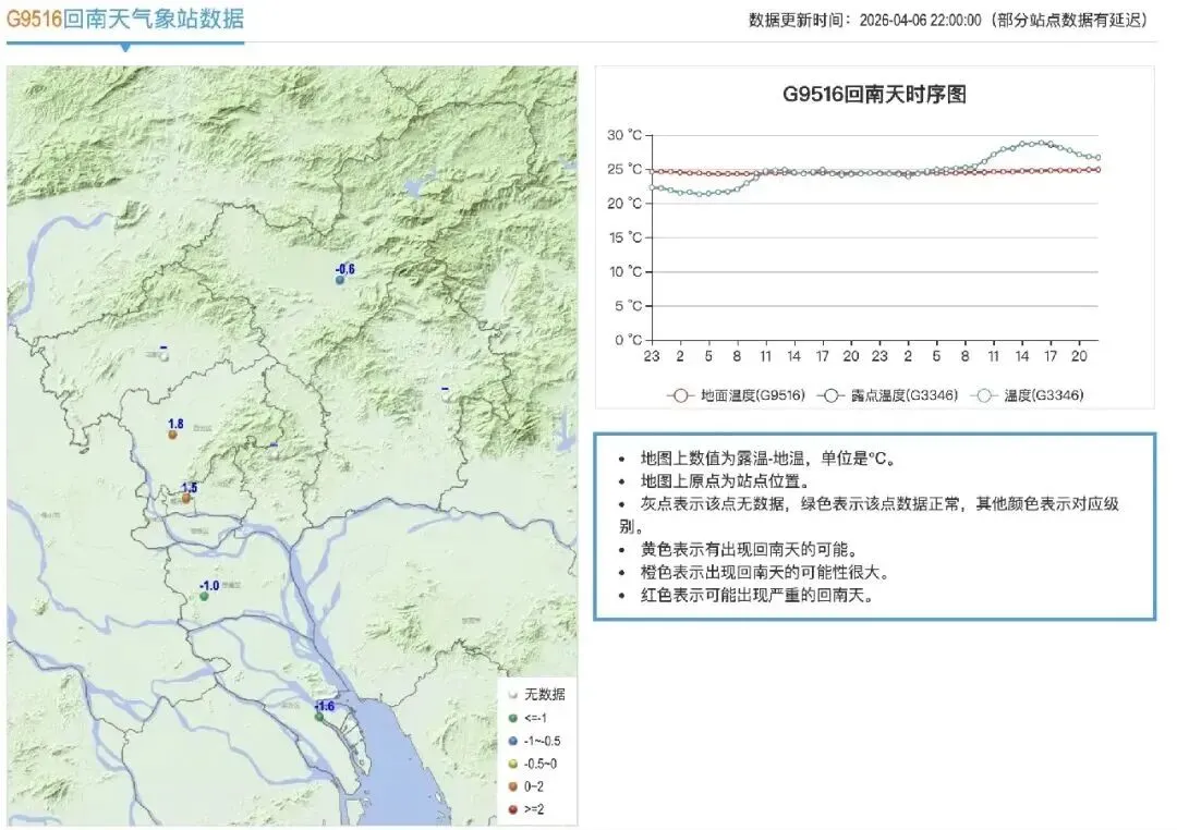 截至4月6日22时,广州“回南天”监测情况 广州天气网截图