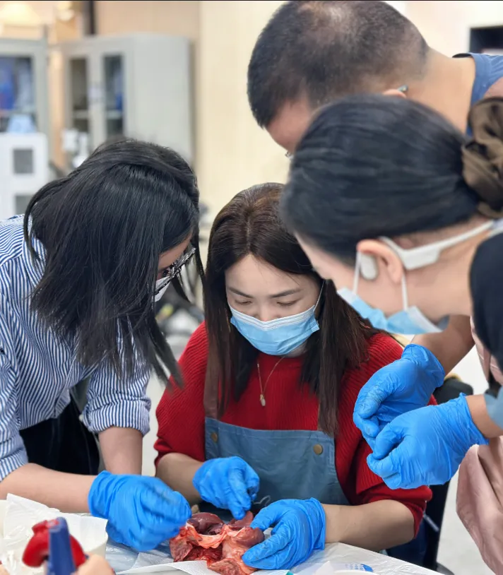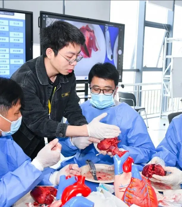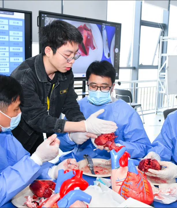 采用维思模教学方法,通过猪心解剖手把手教学模式,助力零基础学员快速重建心脏模型。