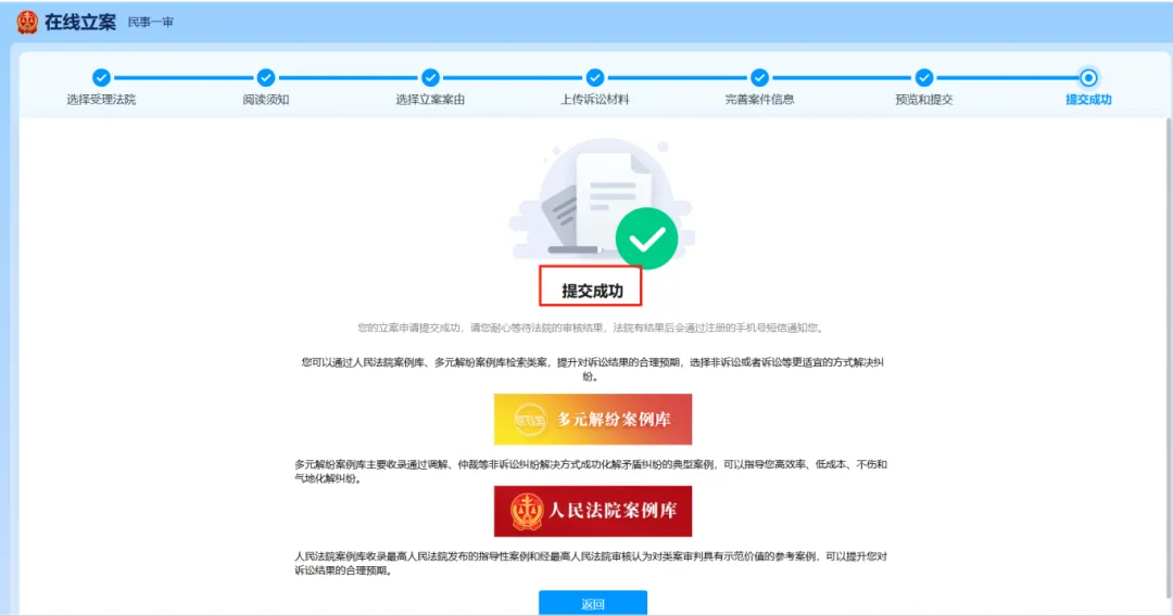 进入预览和提交界面。再次核对案件信息,确认无误后点击提交,显示提交成功后等待审核即可。