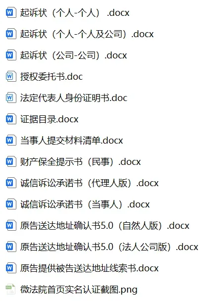 申请民商事诉讼应提交以下材料清单: