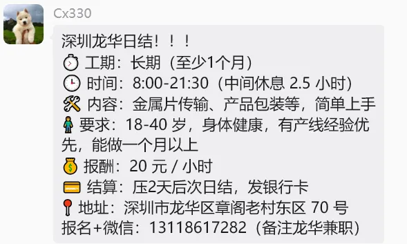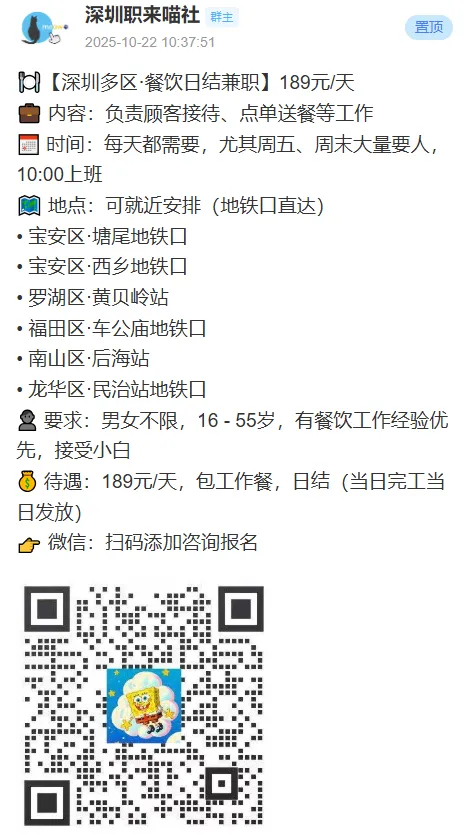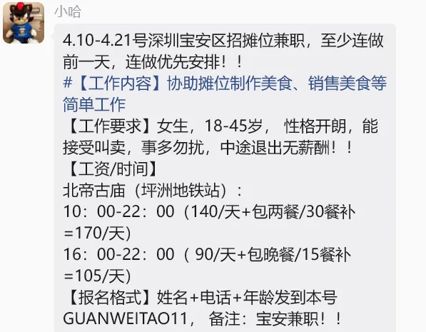 【深圳兼职】青春限定演唱会、340元/造型师、180元/溜机器狗、230元/展会卡通人偶、400元/礼仪接待......