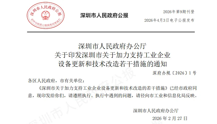 深圳市关于加力支持工业企业设备更新和技术改造的若干措施