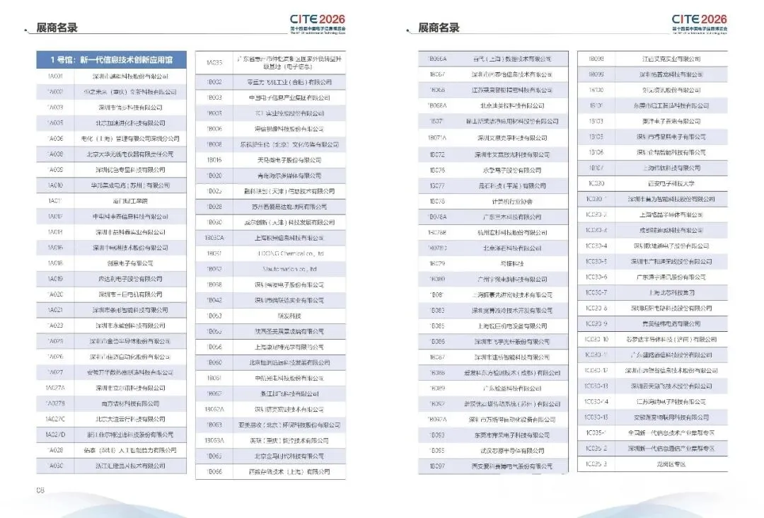 1号馆新一代信息技术创新应用馆 参展商名录